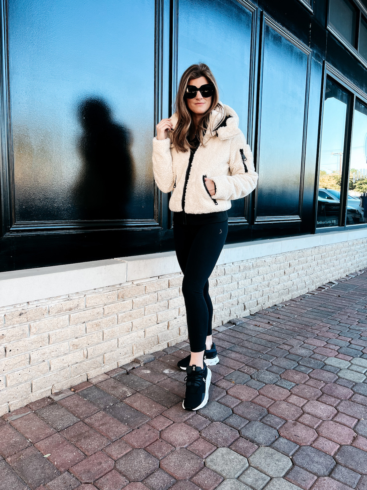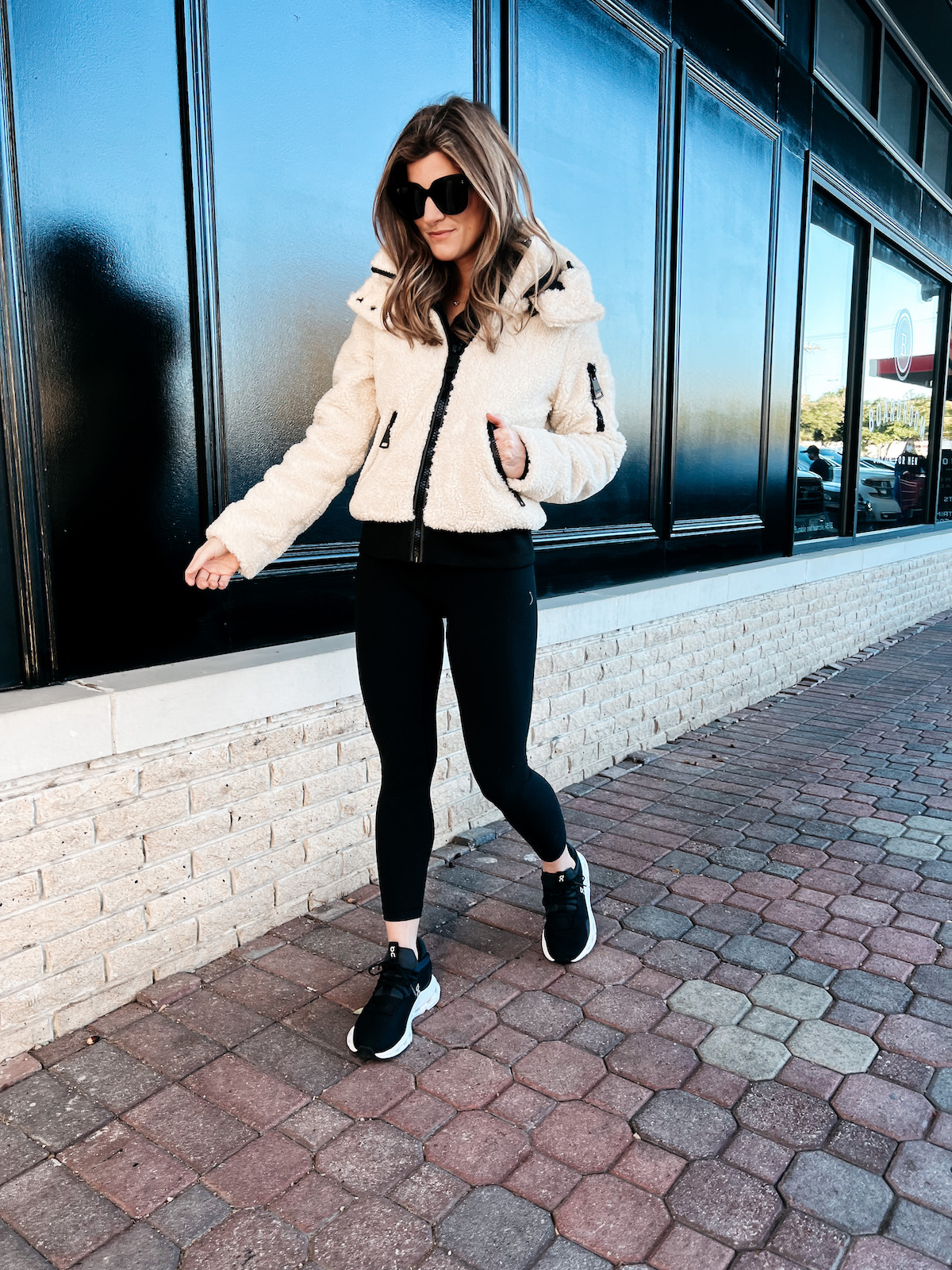 Outfit Details: Sherpa Jacket (wearing size S) // Leggings // On Cloudswift Running Shoe