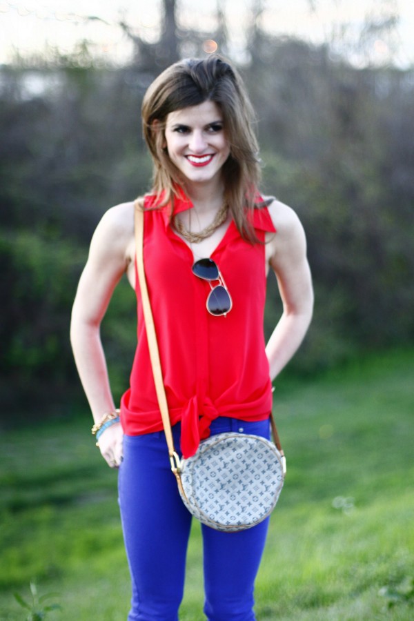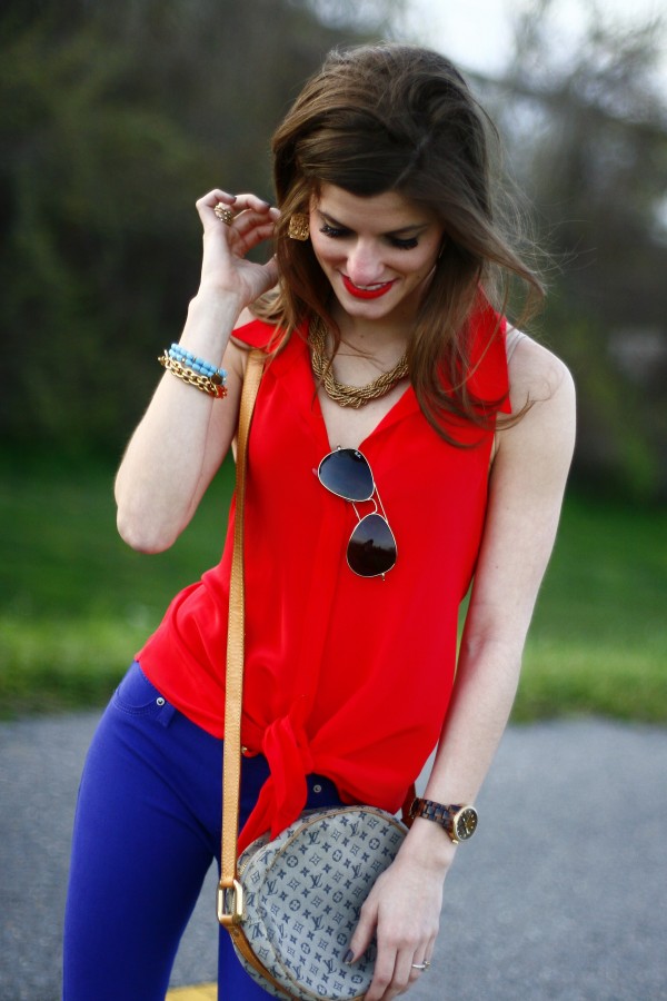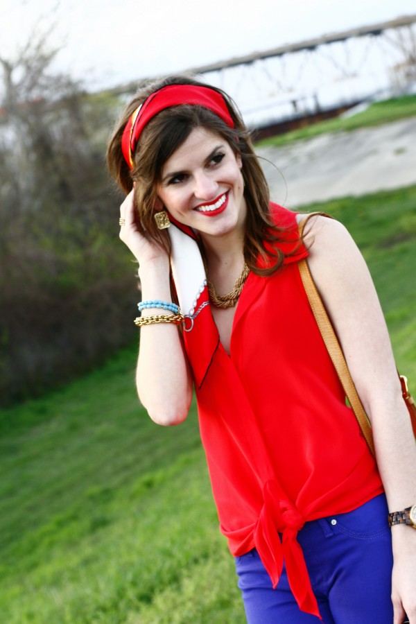 Shirt: c/o Eros Baton Rouge | Jeans: DL1961 | Shoes: Dee Keller The Rebecca | Purse: Vintage LV | Necklace: Dotted Tusk | Sunglasses: Ray Ban | Scarf: Express