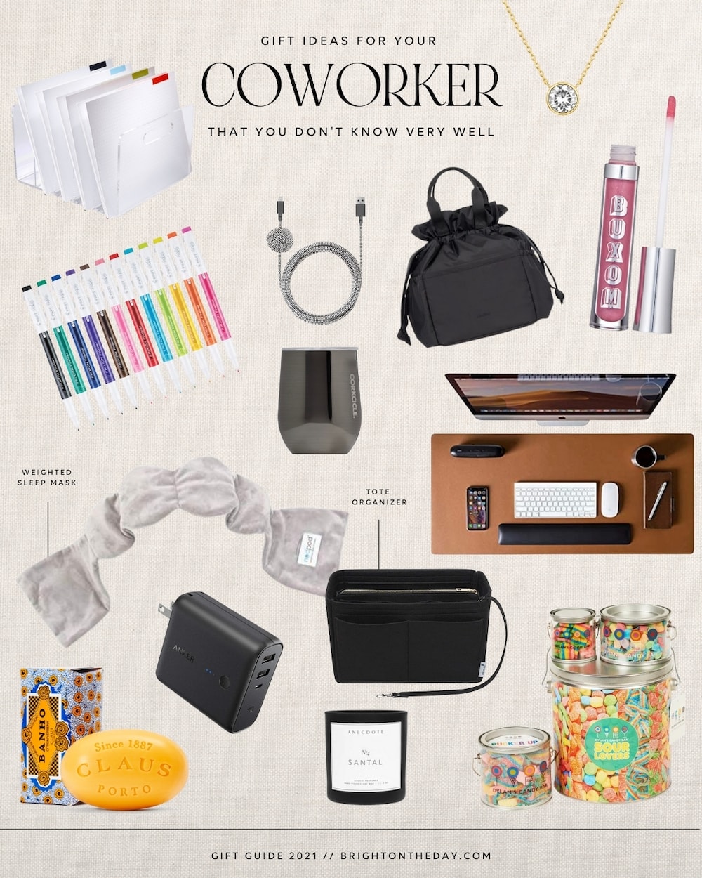 I told y’all the next BTD gift guide was coming soon! This was one of my most highly request guides because let’s be honest, it can be HARD to think of gift ideas for coworkers… especially the ones you don’t know that well. When I was coming up with gift ideas for this gift guide, I knew I wanted to include items that could be enjoyed at the office and at home like the leather desk pad and the insulated wine glass (that could totally be used for coffee during the day). I’ve got plenty more gift guides coming your way so keep an eye out! There are some good ones coming up that you won’t want to miss.