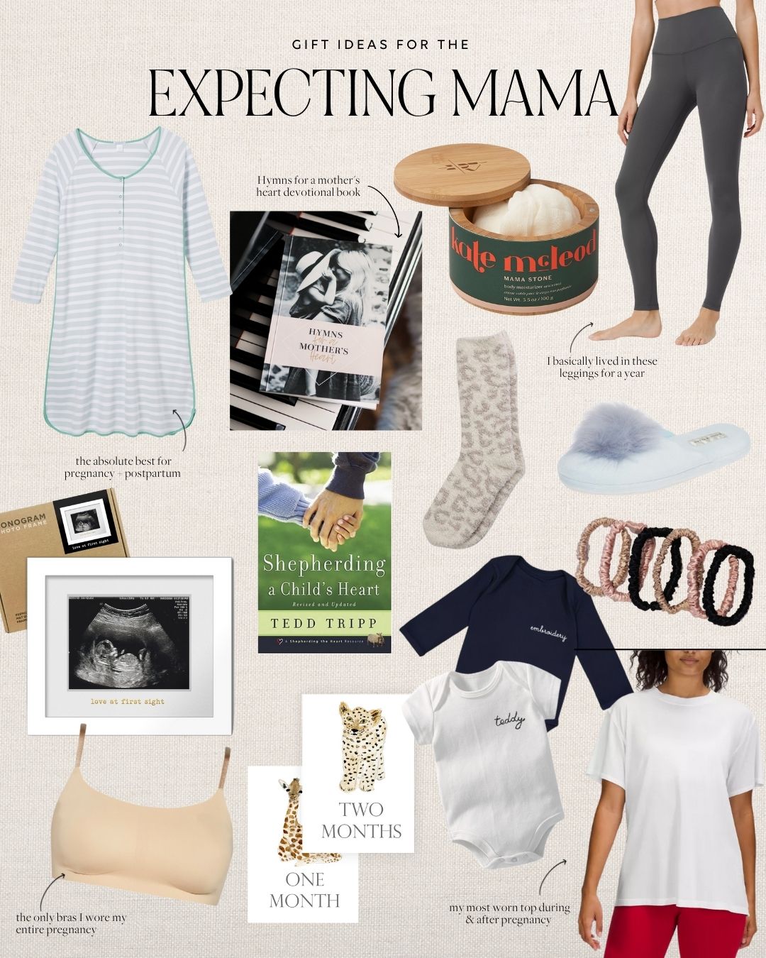 This gift guide for the expecting mama was such a sweet one to put together. It brought back all the memories and feelings of being pregnant with Four! I included some of the go-to items that I couldn’t live without like these Lake maternity pajamas and a few things I wish I’d known about like this body stone moisturizer. Whether you know an expecting mama or are an expecting mama, these items will make any mom-to-be feel pampered during pregnancy!