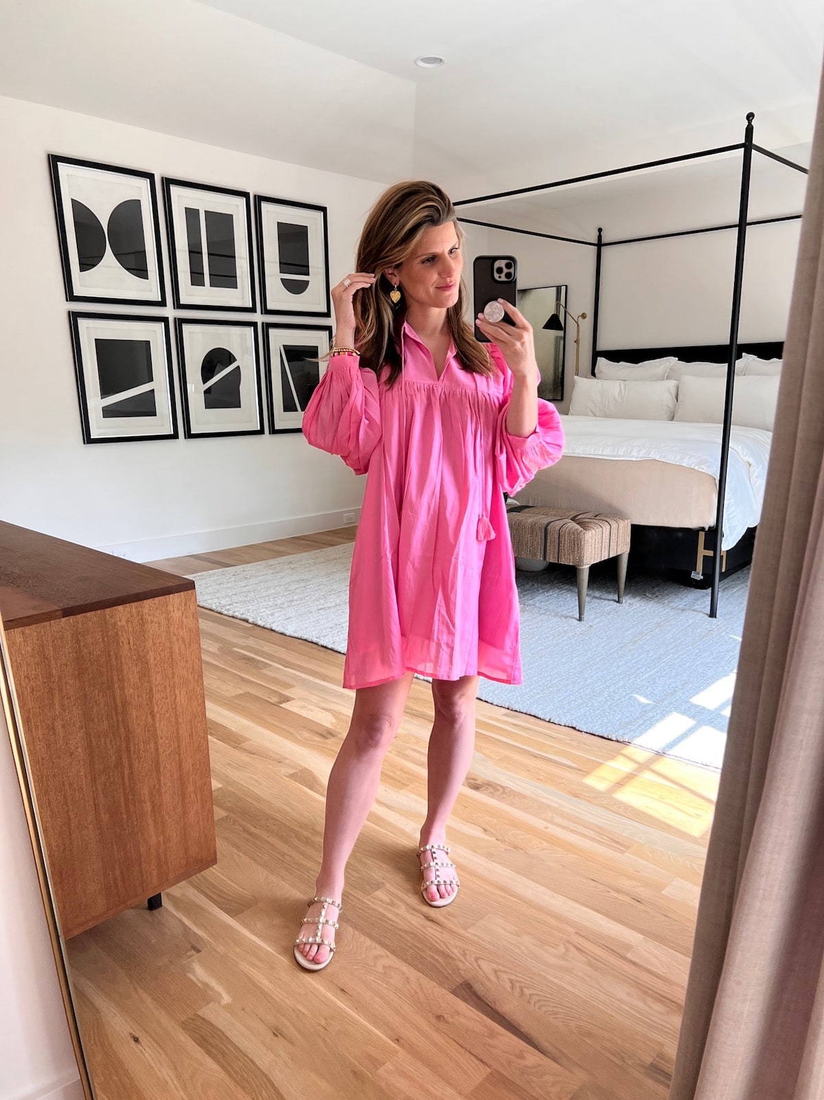 I’ve shared a lot of dresses since getting pregnant, and it seems like y’all are loving them as much as I am. This pink mini dress was a huge seller last month — it’s so comfy and the perfect length in my opinion.