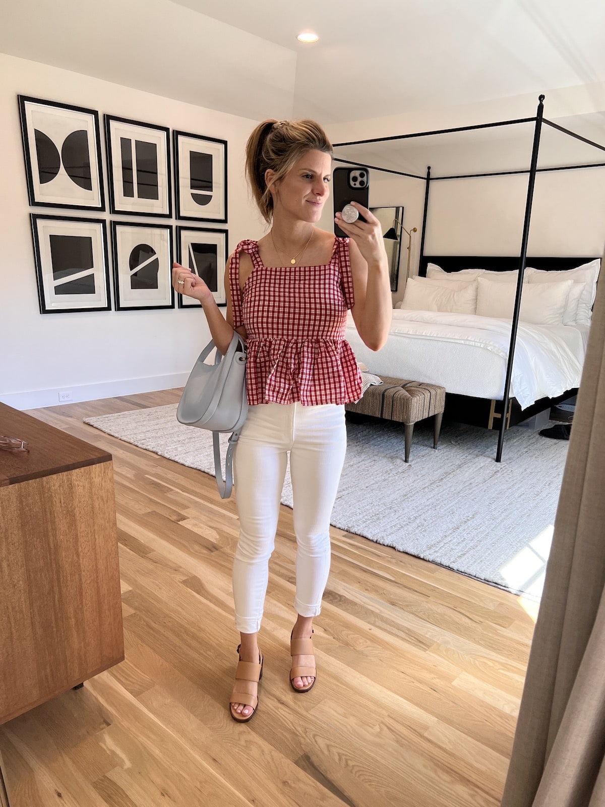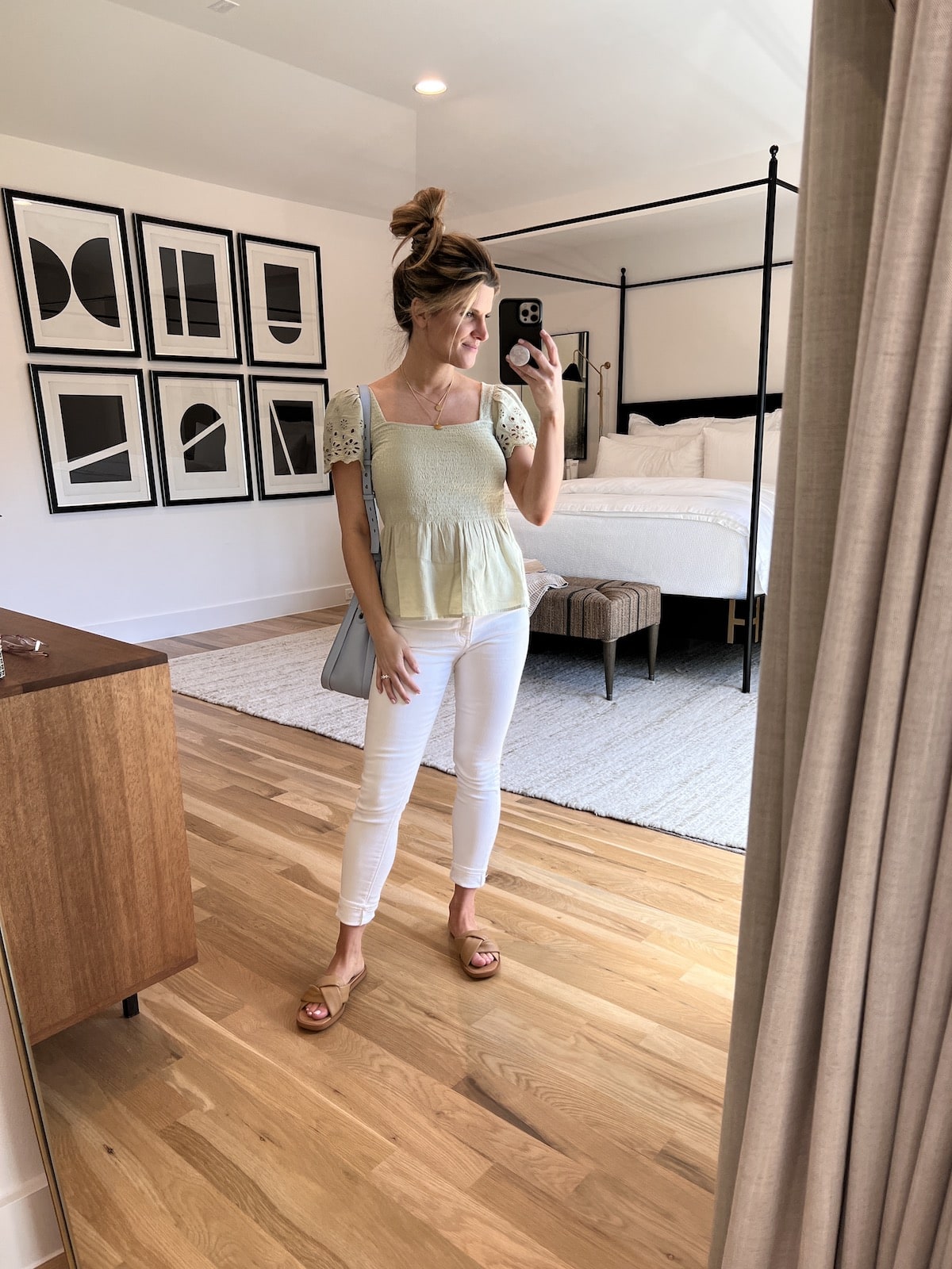 Tops were another must for this haul, and I knew I had to add this sweater tank and cardigan set. This obviously won’t last me once the baby bump gets bigger, but I am loving it for now. This eyelet smocked top is also a FAV and so cute. 10/10 recommend.