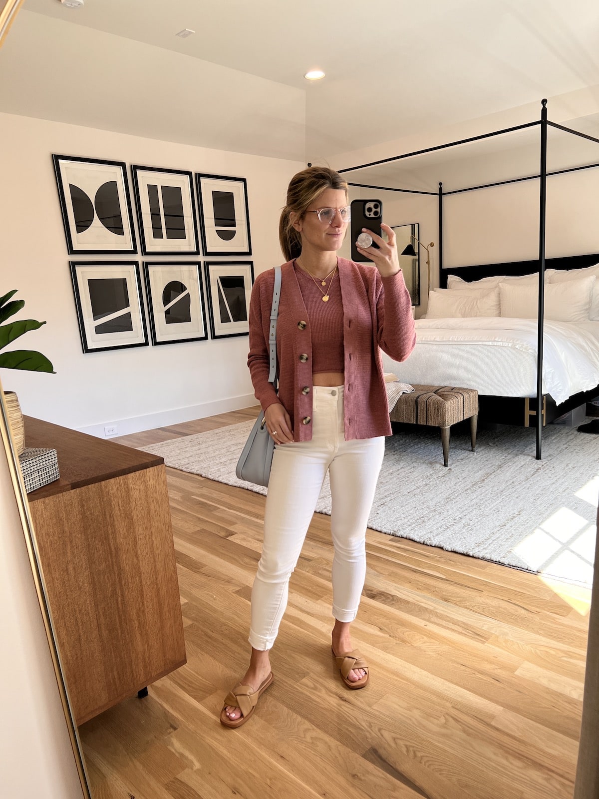 Outfit Details: Top (wearing size XS) // Cardigan (wearing size XS) // Jeans // Shoes // Bag // Necklaces