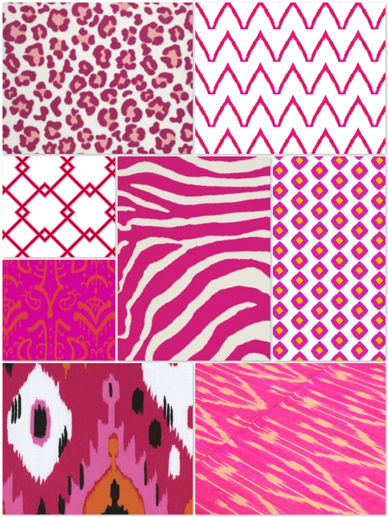 And lastly, the accent fabric! I have a little bench at the end of my bed I wan to upholster with a fun, pink IKAT fabric. I also want to re-upholster those gold chairs I mentioned above. And lastly, I’ll add a few random pillows here and there! Which fabrics are your favorite??