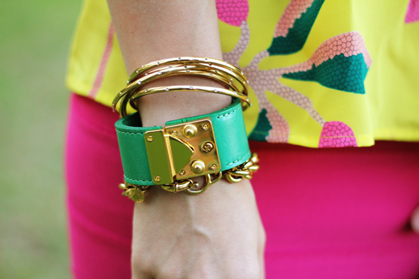 The Outfit: Shirt: Elizabeth & James (similar here | Pants: Karina Grimaldi (Old) | Necklace: Vintage, but similar here | Initial Necklace:West Avenue Necklace | Lips: Bobbi Brown Shimmer Lip Gloss | Purse & Shoes: Dee Keller Designs | Earrings: (old) SEE below for similar! | Bracelet: | Sunglasses: Persol Sunglasses