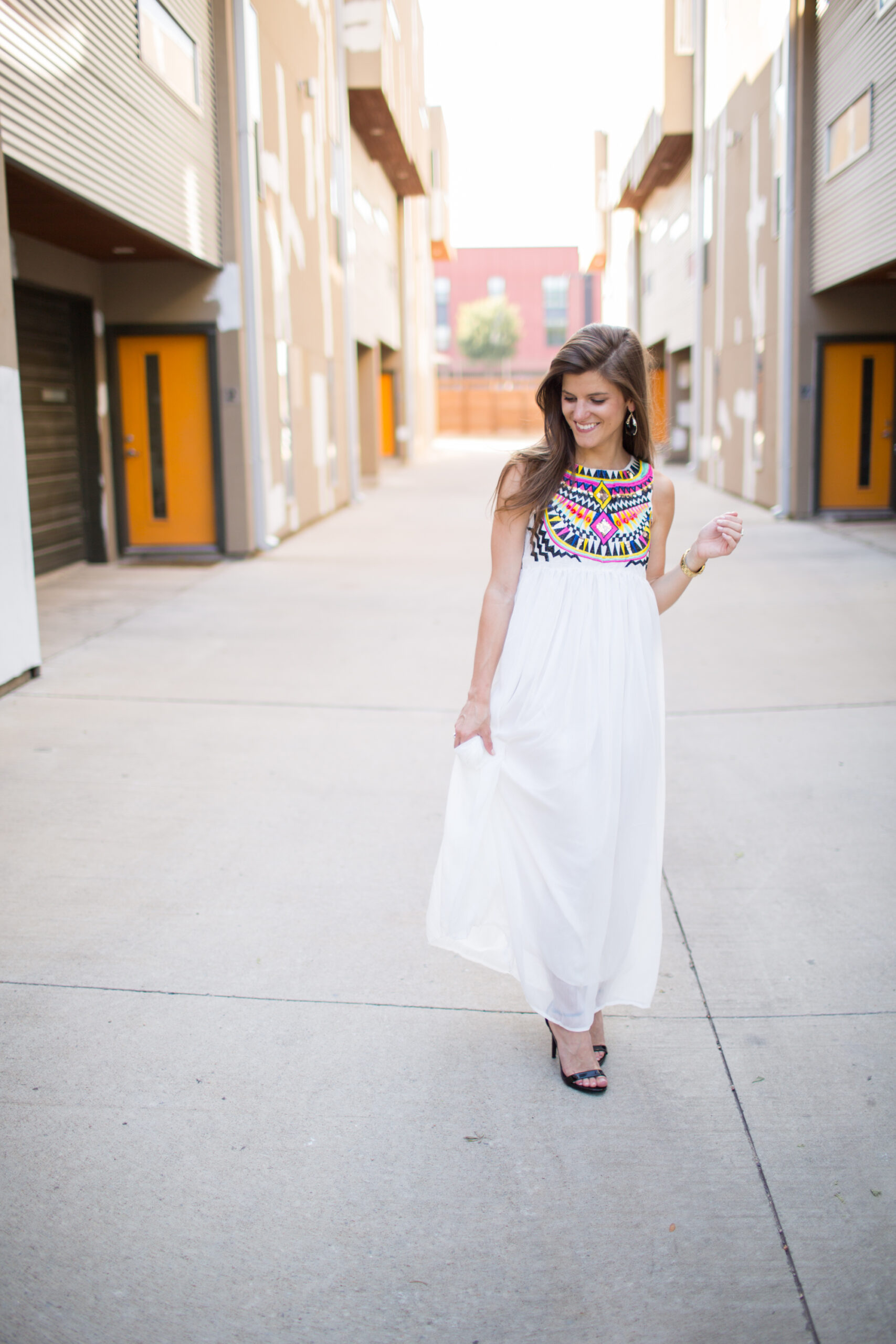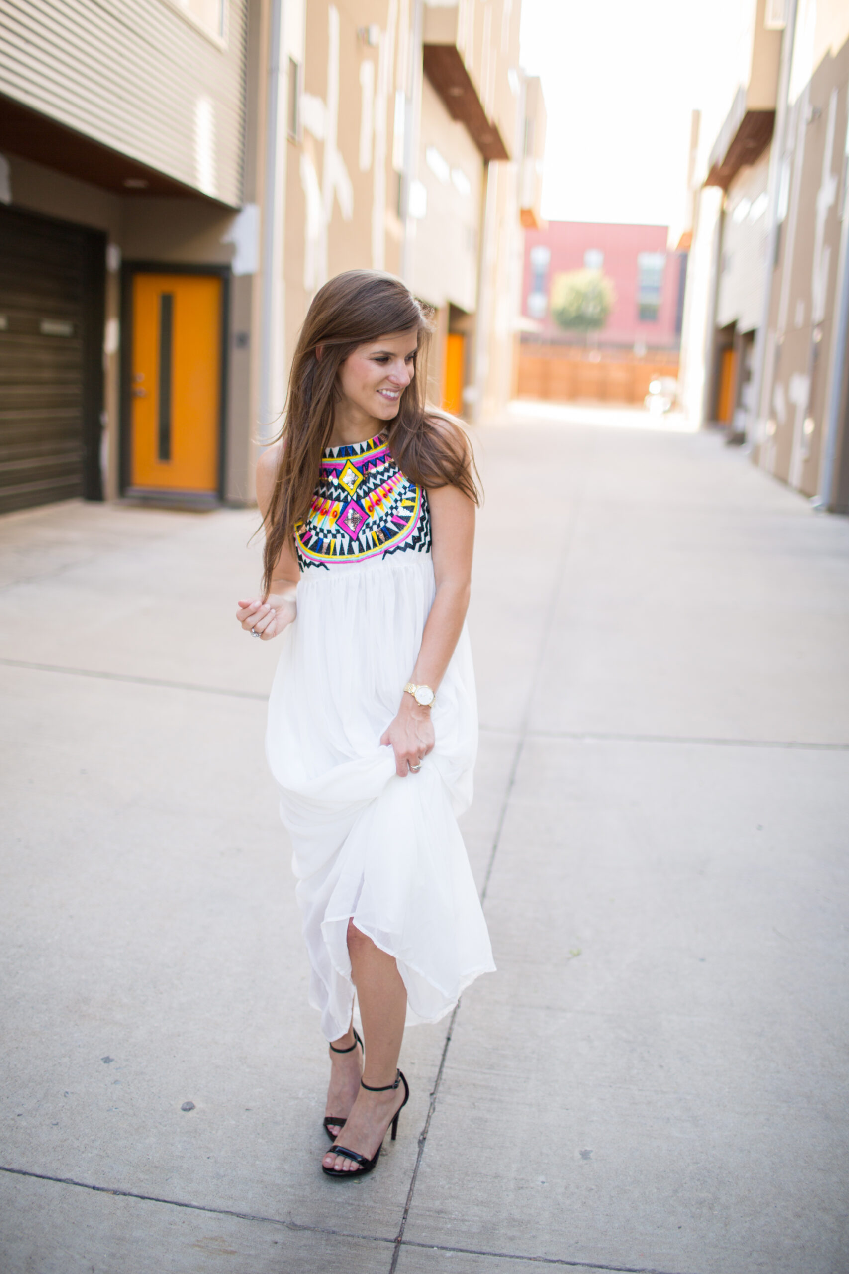 Dress: c/o Sheinside White sleeveless geometric tribal print dress (only $26!) // Shoes: Steve Madden Stacy Heel // Earrings: c/o Kendra Scott Reyna Earrings // Watch: c/o Kate Spade Grammercy // Ring: c/o Kendra Scott ella ring in silver (did you enter the giveaway yet?!)
