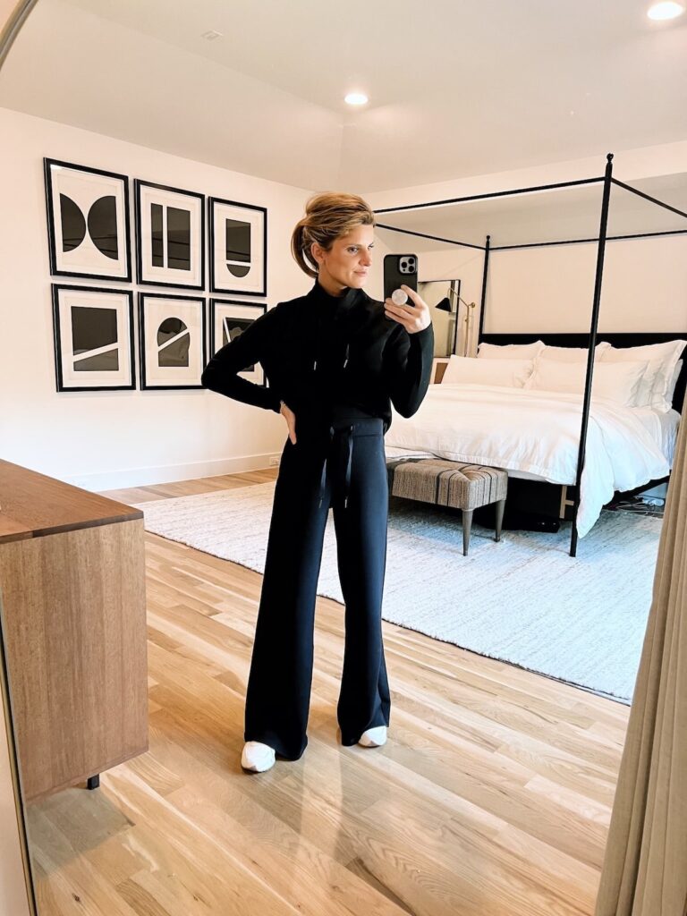 And the wide leg pant is a game-changer. I’ve always loved a good wide leg, but these are on another level. They drape perfectly and are just unbelievably comfortable. I feel put-together without feeling uncomfy. They’re a great athleisure alternative to leggings.