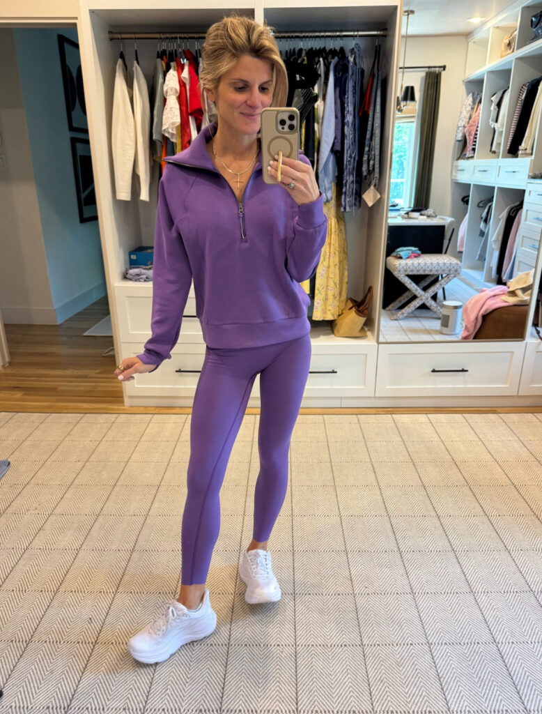 Speaking of leggings—sometimes the mood just calls for a little more structure. That’s where the the booty boost leggings come in. These leggings paired with half zip is the perfect combo for a casual vibe. I also love that they give you that extra little oomph where you want it, and the 7/8 length is perfect for my height (I’m 5’3″).